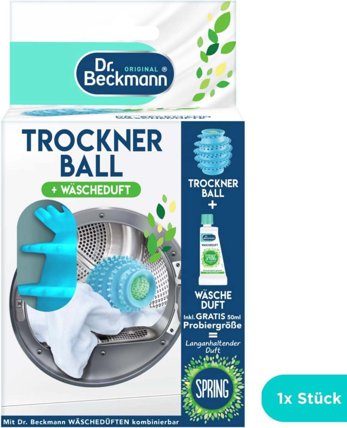 Dr Beckmann Bola para secadora, Para ropa fresca y suave, Se puede llenar con perfume para la ropa, Acorta el tiempo de secado, Incluye perfume para la ropa Primavera Muestra 50 ml -