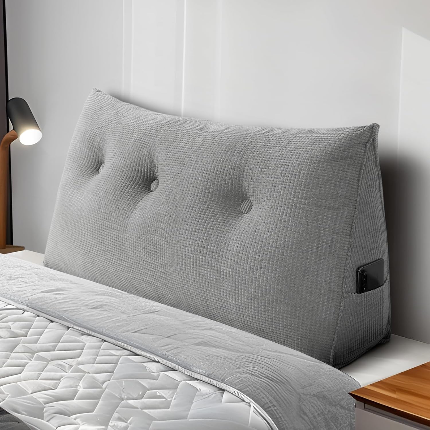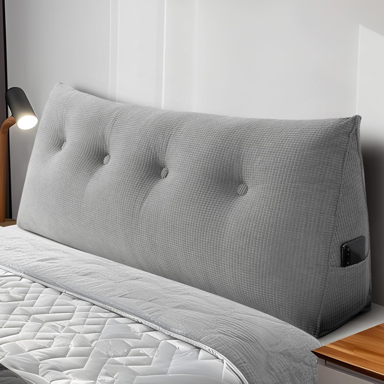 - Práctico bolsillo lateral, diseño atento: Equipada con un bolsillo lateral, esta cama con cojín de pared proporciona espacio de almacenamiento adicional para controles remotos, libros, teléfonos móviles y otros artículos pequeños. Esto evita el desorden cerca del sofá o la cama, mantiene tu casa ordenada y reduce el tiempo de búsqueda, lo que mejora tu calidad de vida.