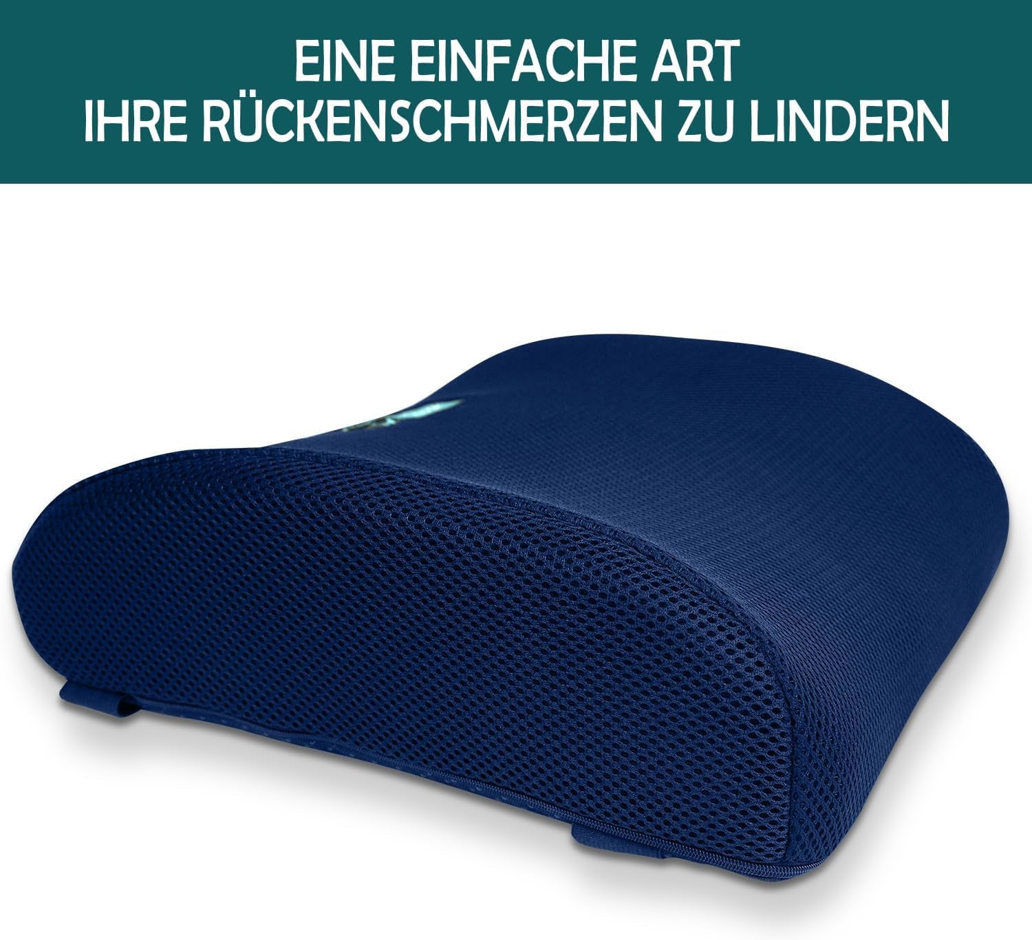 Almohada de espalda ergonómica azul que alivia y previene el dolor de espalda - Almohada lumbar de espuma viscoelástica para oficina, silla de ruedas, hogar (azul marino)