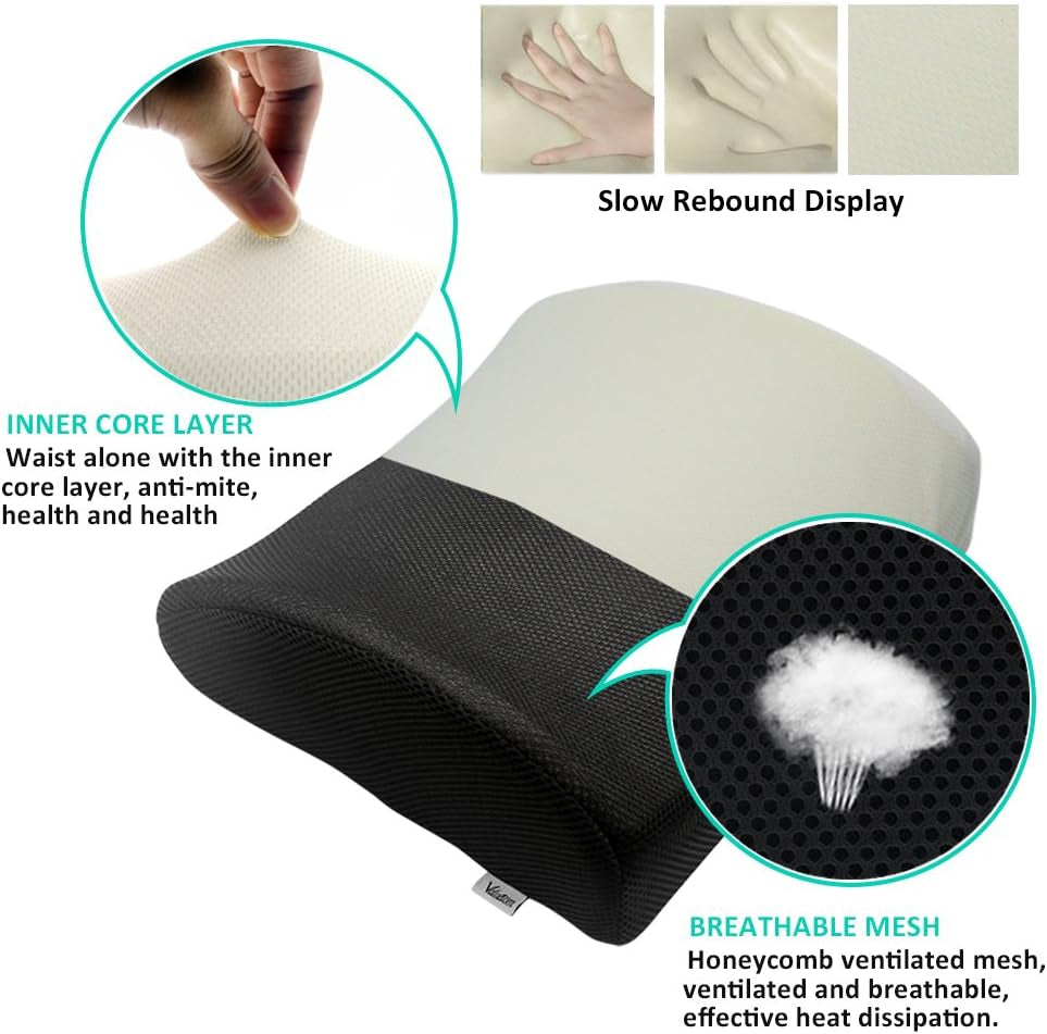 Almohada lumbar de espuma viscoelástica de primera calidad, almohada de soporte lumbar de malla 3D, soporte de respaldo para automóvil, oficina y hogar