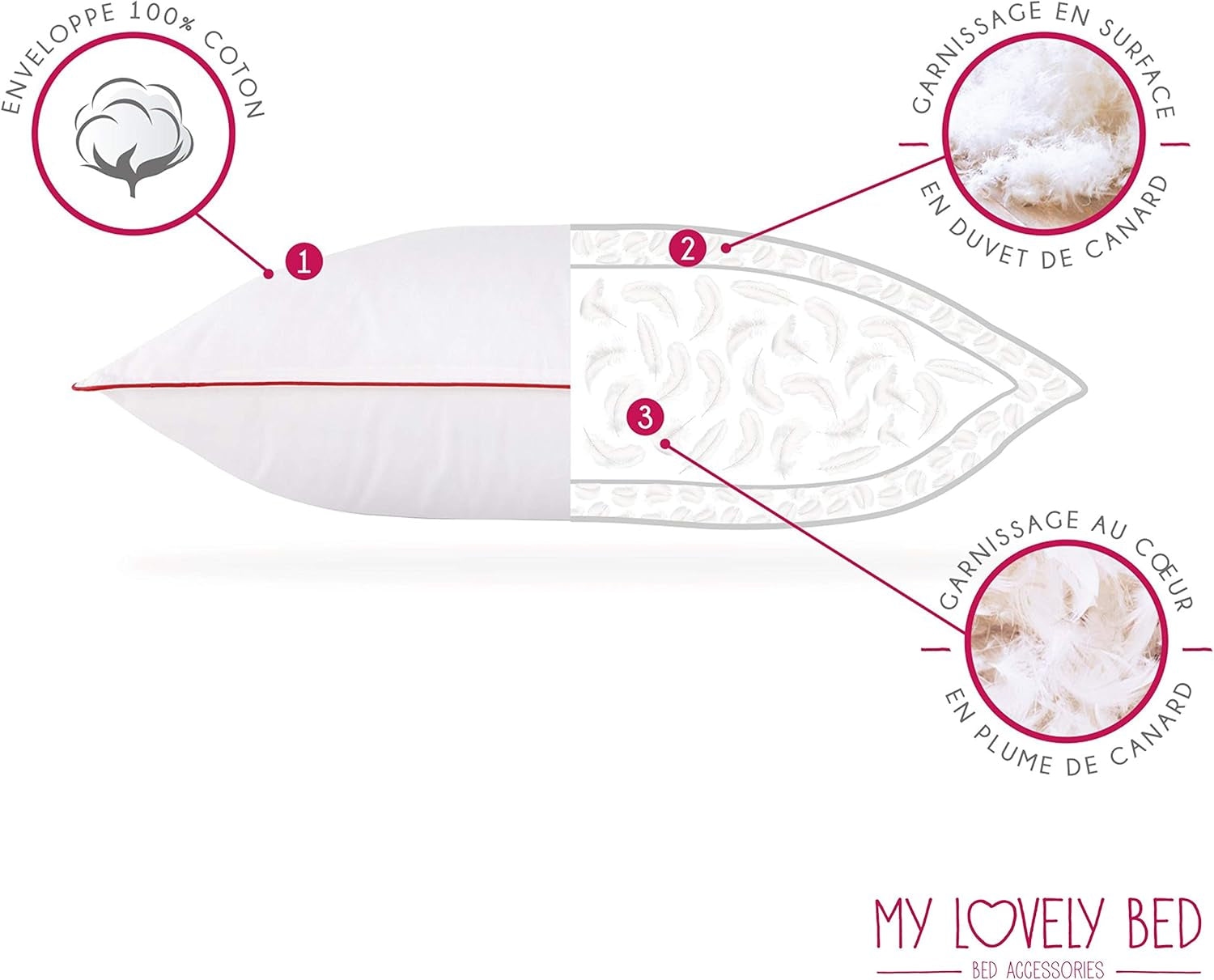 - Almohadas de plumas | 100 % plumón de pato rodeado por un núcleo de 50 % plumón y 50 % plumas