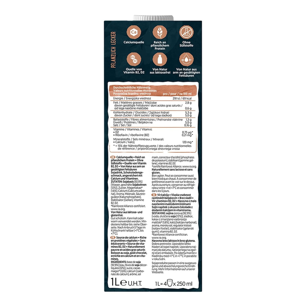 Alpro Proteindrink Soja Chocolate es una bebida proteica 100% vegetal, dedicada a quienes evitan los lácteos pero quieren un aporte rico en proteínas. Con un equilibrado sabor a chocolate y un práctico envase de 8 x 1 L, es la opción ideal para el desayuno, la merienda o los batidos diarios.