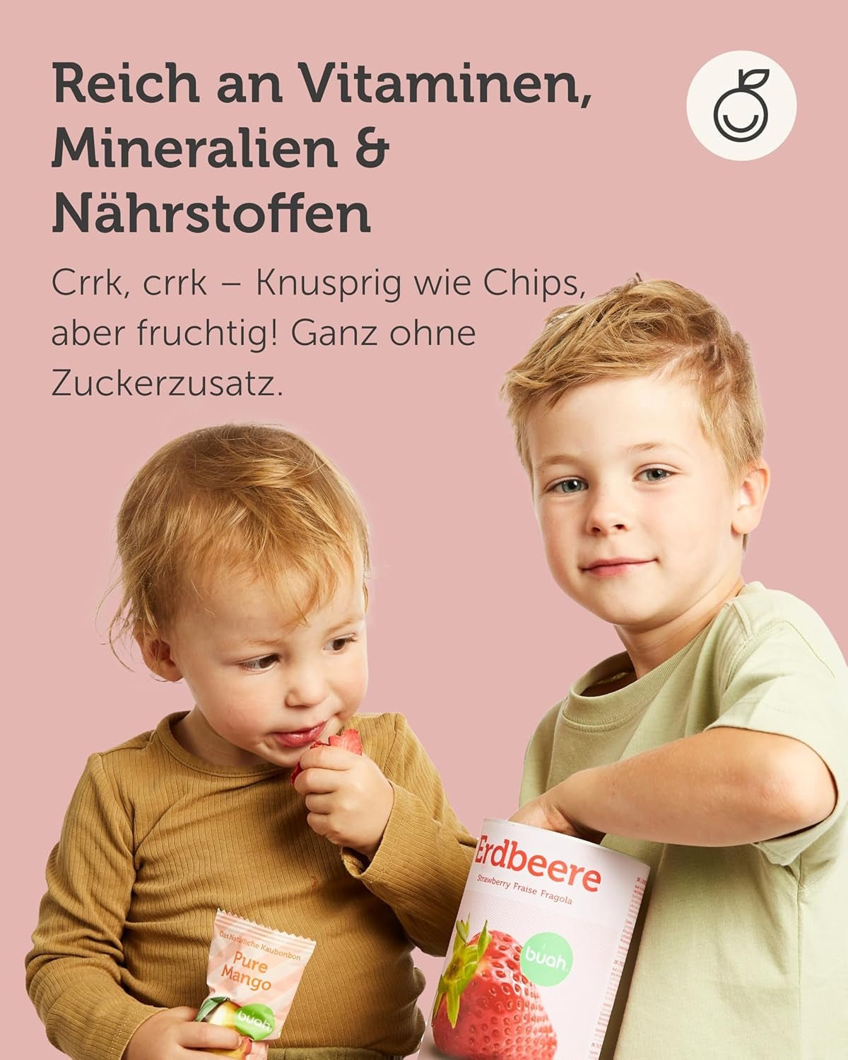 Las frutas se mantienen frescas por más tiempo. La congelación por choque elimina la mayor parte del agua de la fruta mediante una aspiradora. Esto deja la fruta en su forma, color y sabor naturales, combinado con un crujido irresistible.