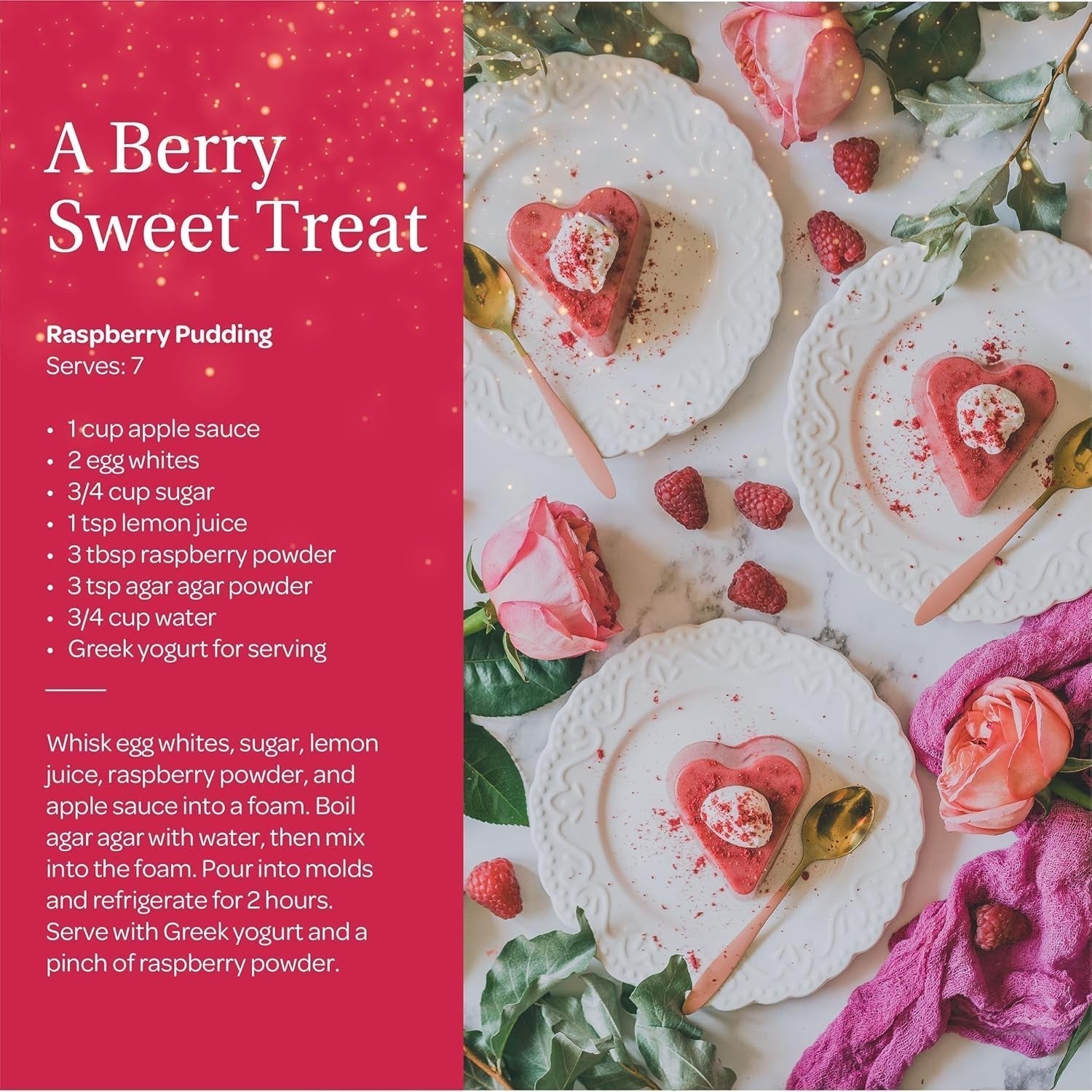 Nuestro polvo de frambuesa delicadamente procesado está lleno de nutrientes y sabor y ¡Aprovecha al máximo las frambuesas orgánicas maduras!