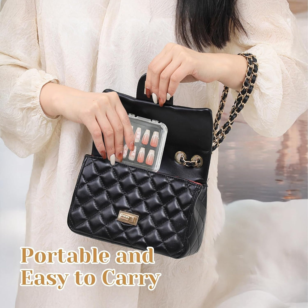 • ✔ Cómodo almacenamiento y portabilidad: cajas individuales compactas (7,6 x 7,6 x 1,8 cm) para 14 pares de clavos (cortos/medianos/largos). Fácil de transportar: ideal para viajes, salón de manicura o negocio de manicura DIY. ¡No más caos!