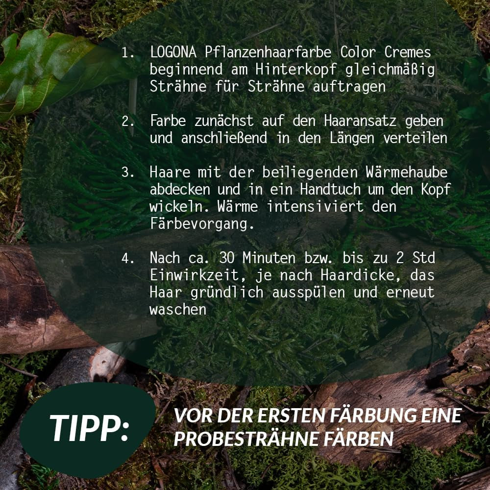 - Volumen de suministro: 1x LOGONA Natural Cosmetics Plant Hair Color Cream 240 Nougat Brown (150ml), 1x guantes, 1x gorro, 1x instrucciones de uso