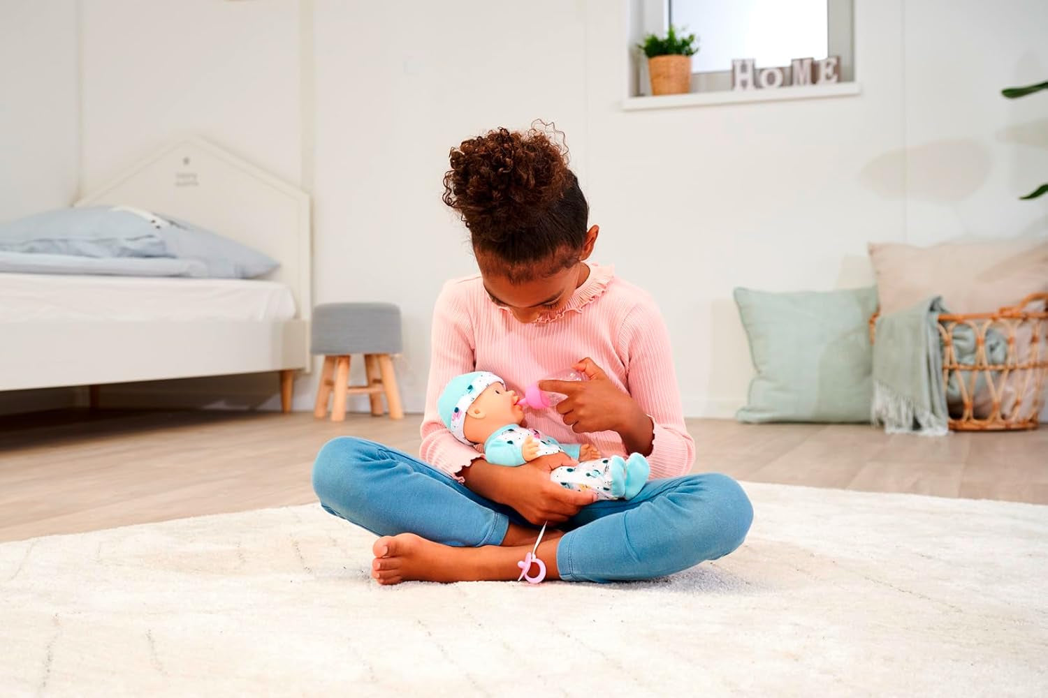 - Con tetina y biberón: ofrézcale un biberón y utilice una tetina para calmarlo. Ambos están incluidos en el set con la muñeca. Los accesorios facilitan especialmente a los niños el cuidado de su bebé. Diseño apto para niños: el tamaño y la función de la muñeca están optimizados para las necesidades de juego de niños de 2 años en adelante, lo que facilita el juego de roles.