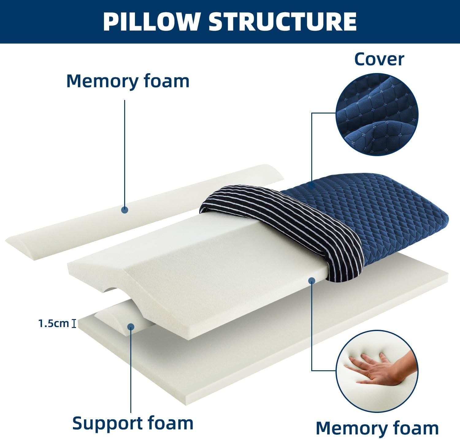 • ( 3 ) Información del producto: Bastante grande Tamaño: 60 * 30 * 6,5/3,5 cm, adecuado para la mayoría de personas con diferentes tipos de cuerpo y diferentes posiciones para dormir. La almohada lumbar está fabricada en viscoelástica, regulable en firmeza y altura. La funda de la almohada es desenfundable y lavable.