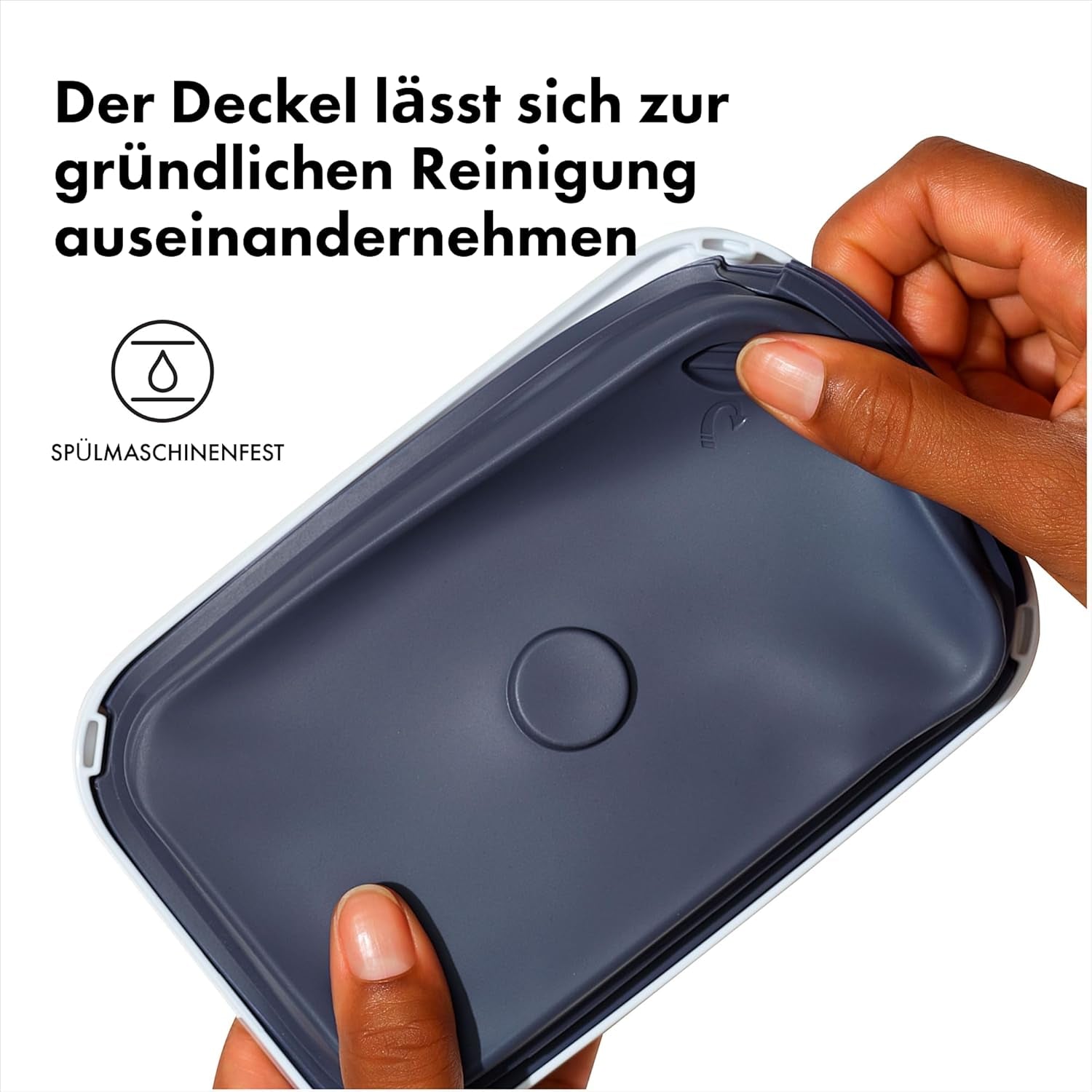 • Para obtener mejores resultados, utilice siempre el botón para abrir y cerrar. No transporte el recipiente con tapa; Libre de BPA. Apto para lavavajillas en la rejilla superior