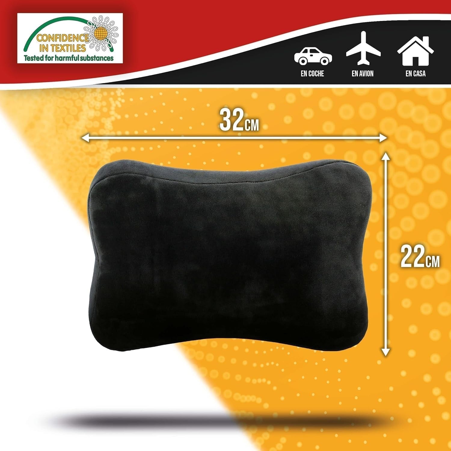 Si busca una almohada para mejorar su comodidad al sentarse, nuestro reposacabezas y almohada lumbar son la solución perfecta. Diseñada para brindar soporte adicional para la espalda y el cuello, esta almohada es ideal para cualquier persona que pasa mucho tiempo sentada en una silla de oficina, conduciendo o simplemente relajándose en casa. La almohada está fabricada con materiales de alta calidad, duraderos y resistentes al desgaste. Está elaborado con un sistema de cuentas de alta densidad que brinda comodidad duradera y soporte adecuado. Este cojín es fácil de usar y se puede colocar en cualquier silla, sofá o coche. El diseño ergonómico garantiza que la almohada se adapte perfectamente a la curva natural de la espalda, aliviando la presión sobre los músculos y mejorando la postura. Puede personalizar la almohada según sus necesidades personales y disfrutar de la comodidad y el apoyo adicionales que brinda. En resumen, si busca una almohada de alta calidad para mejorar su comodidad al sentarse, nuestro reposacabezas y almohada lumbar son una excelente opción. Con su diseño ergonómico, materiales de alta calidad y fácil portabilidad, esta almohada puede ayudar a reducir el dolor de espalda y mejorar su postura dondequiera que la use. Fabricado según las normas Oeko-Tex. Dimensiones: 32 cm x 22 cm, Color: negro
